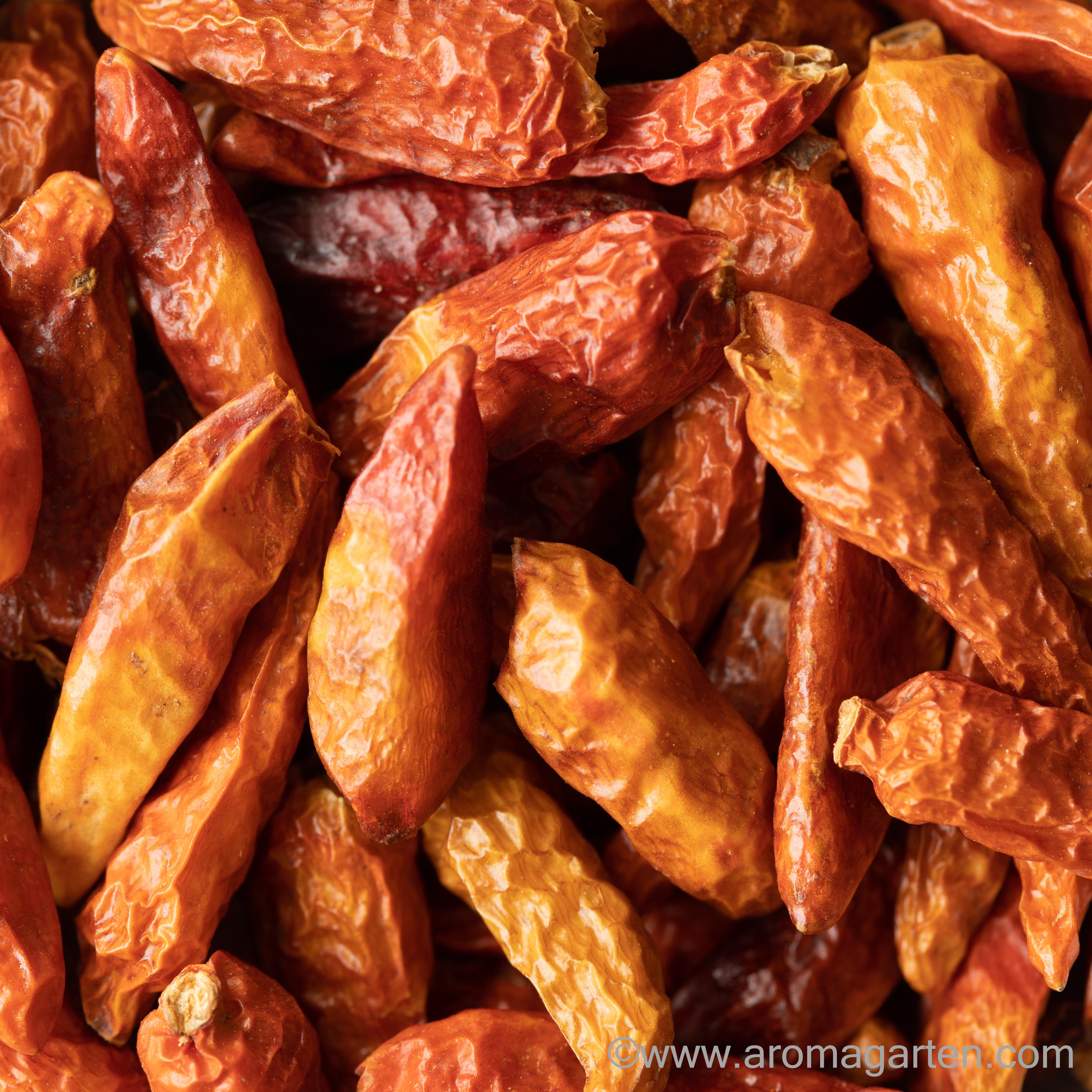 Chili Birdeyes schmecken klar und gradlinig, mit einer deutlichen und direkten Schärfe bis 100.00 Scoville