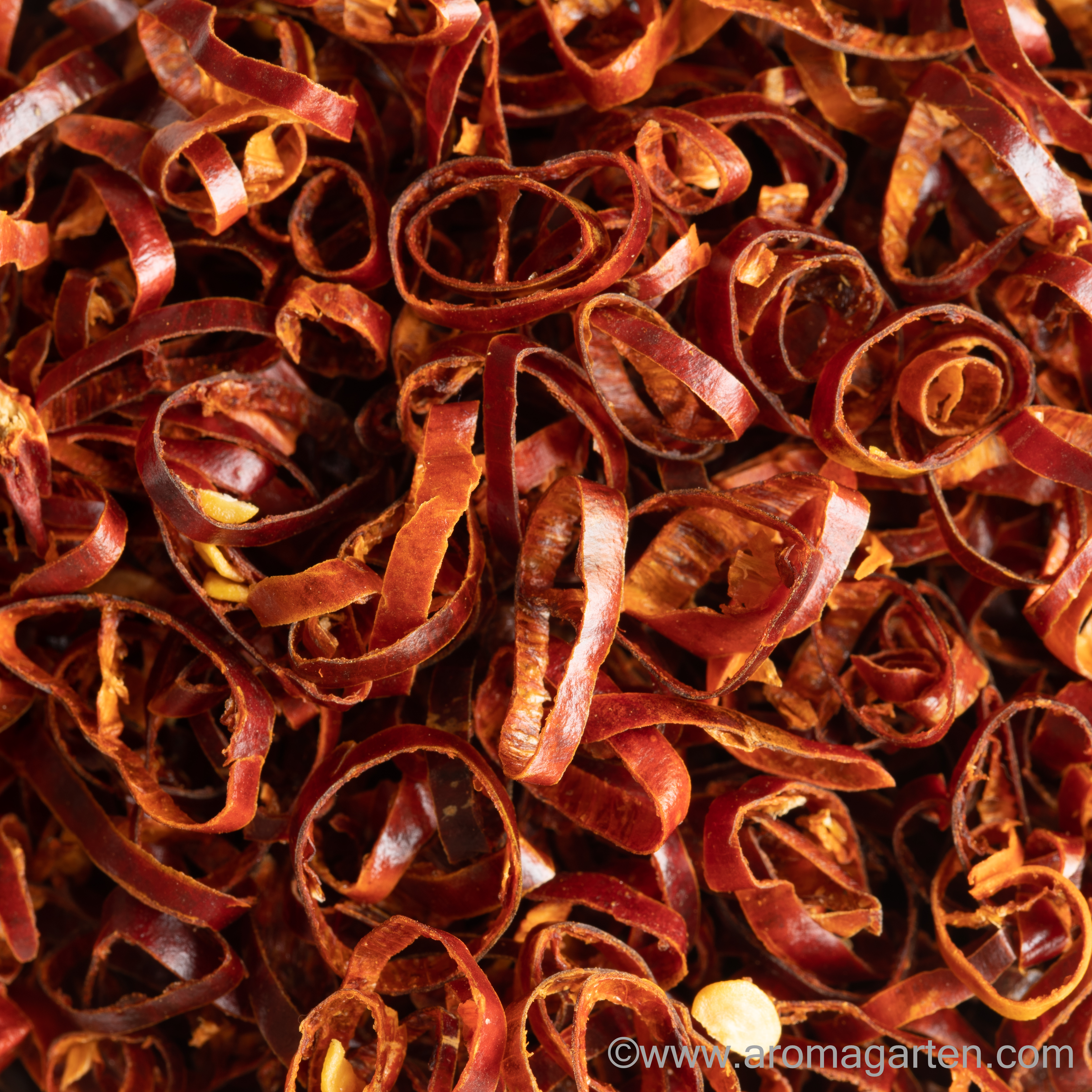 Chili crushed Chiliflocken ohne Saat sind eine unserer mildesten Chillies mit einem fruchtigen Geschmack. Chili crushed sind getrocknete und grob zerkleinerte Chillies. Es gibt sie in verschieden Schärfegraden mit Saat oder auch ohne Saat. Unsere Chiliflocken ohne Saat sind eine der mildesten Chilis bei uns und eignen sich hervorragend zum Ausprobieren, da nicht gleich die erste Messerspitze voll schon richtig Feuer hat, wie bei anderen Sorten z.B. Chili Habanero. Sie passen zu Suppen, Salat, Eintöpfe, Gemüse, Fleisch und Fisch und sind dazu noch ein kleiner optischer Blickfang auf dem Teller. zur Auswahl: Würzen nach Yotam Ottolenghi