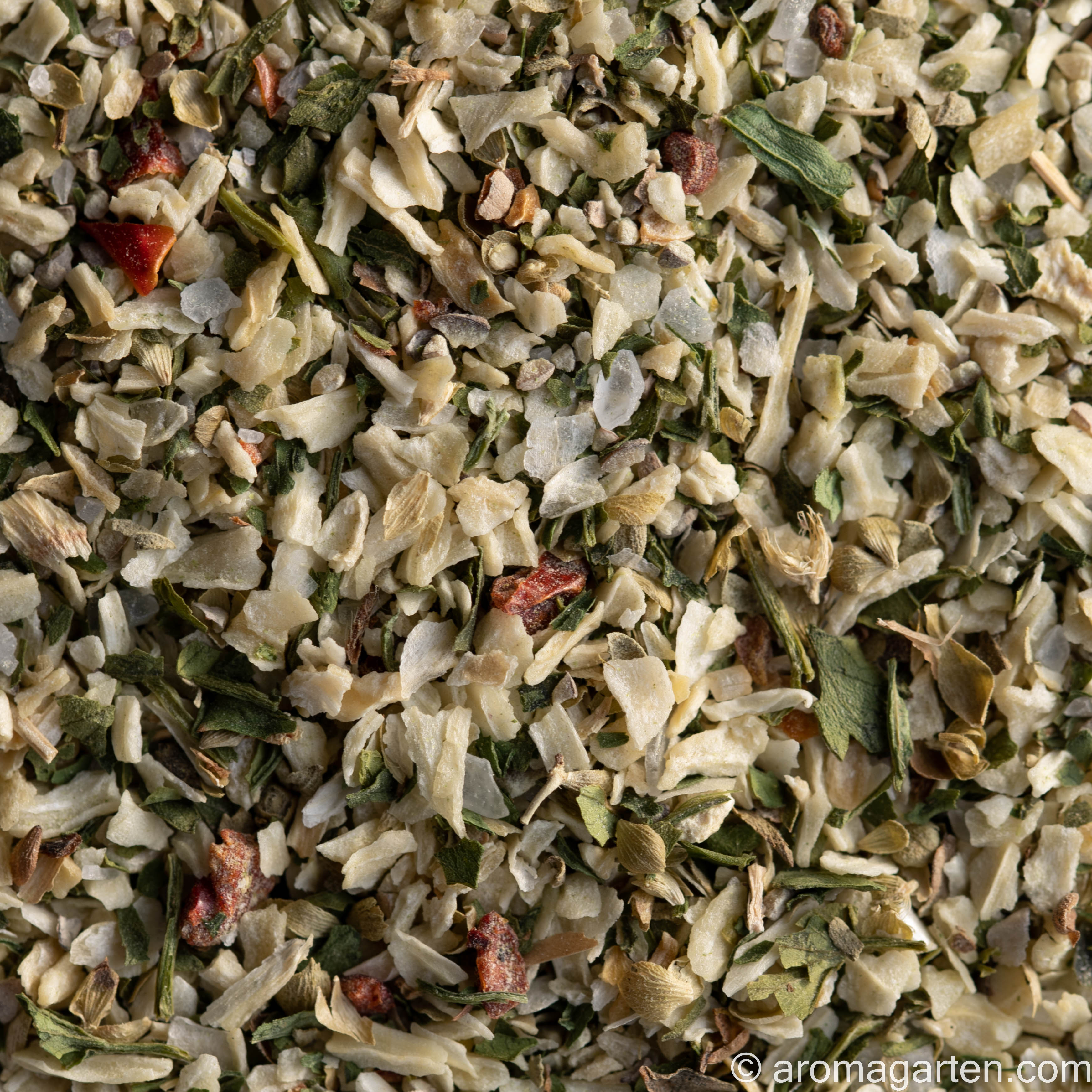 Zutaten: Zwiebeln, Salz 18%, Petersilie, Pfeffer, Knoblauch, Oregano, Roh-Rohrzucker, Paprika.