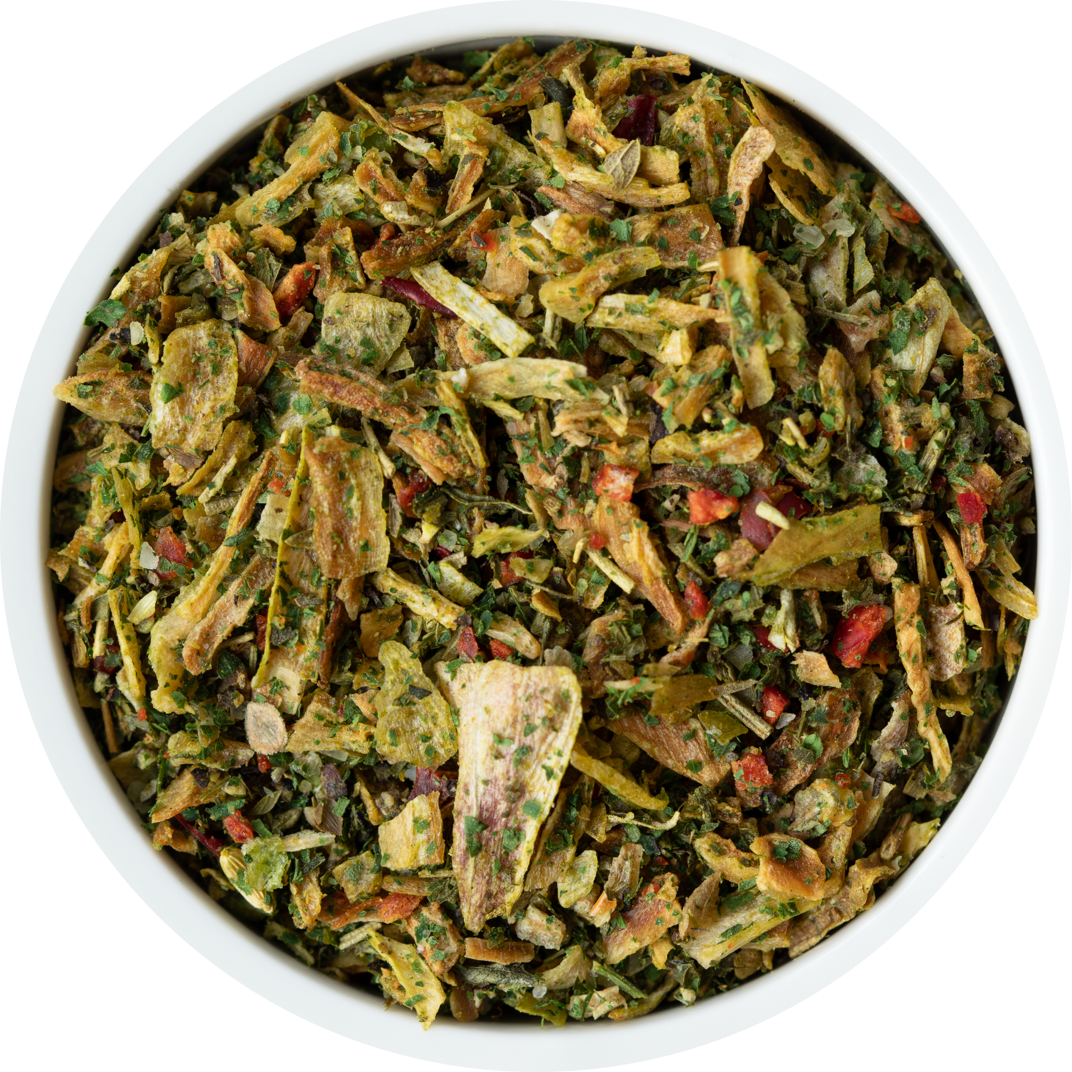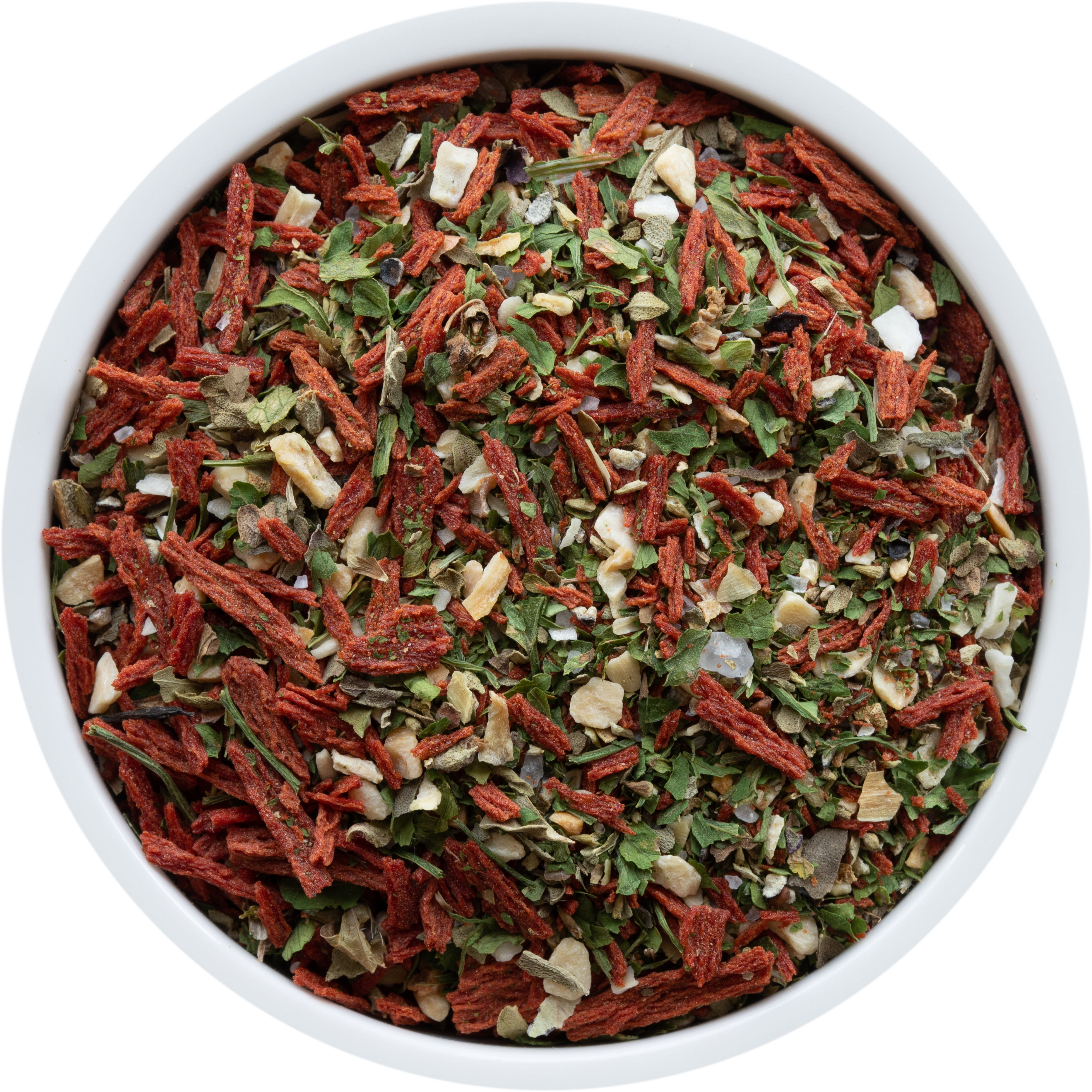 Arrabiata Gewürzmischung Arrabiata grob ist typisch italienisch Knoblauch, Chili und Kräuter einfach lecker. Ein italienischer Klassiker sind Penne Arrabiata. Unsere Arrabiata Gewürzmischung ist genau das Richtig um dies Zuhause nachzukochen (unten eine Rezeptidee für Euch). Die nur grob zerkleinerten Gewürze entfalten beim Kochen nicht nur ein köstliches Aroma, sondern sind auch ein kleines optisches Highlight. Diese Arrabiata-Gewürzmischung lädt einfach dazu ein es auch für andere Gericht, als den Klassiker zu testen. Wir wünschen viel Freude beim Kochen! Zutaten: Zwiebeln, Knoblauch, Chillies, Salz, Meersalz, Petersilie, Paprika, Karotten, Knoblauch, Sellerieblätter. Ohne Glutamat. Hier eine Rezeptidee: Arrabiata Gewürzmischung in gutem Olivenöl kurz erhitzen (etvl. etwas in Streifen geschnittene Pancetta dazu), frisch geschnittene Tomaten oder passierte Tomaten aus dem Glas hinzufügen und einige Minuten dünsten. Parallel dazu Penne ca. 2 Minuten kürzer garen (je nach Packungsanweisung). Die halb gegarten Penne mit geriebenen Pecorino Käse zu den Tomatensud geben und unter leichtem Wenden in der Sauce fertig garen. Die Mengen variieren je nach Geschmack. Guten Appetit