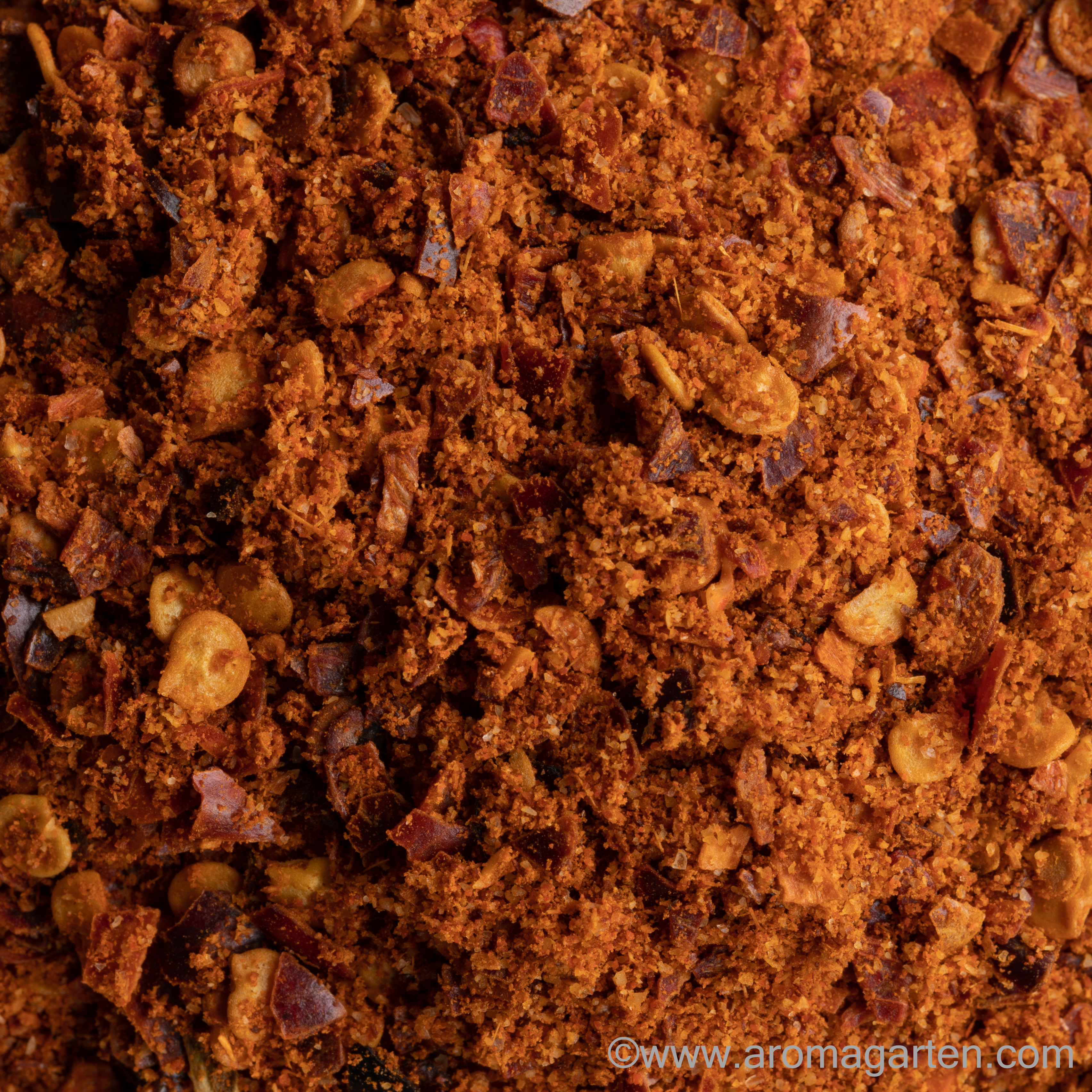 Zutaten: Chilies*, Knoblauch*, Koriander*, Kreuzkümmel*, Paprika*, Steinsalz. Alle mit * gekennzeichneten Zutaten stammen aus kontrolliert biologischem Anbau.