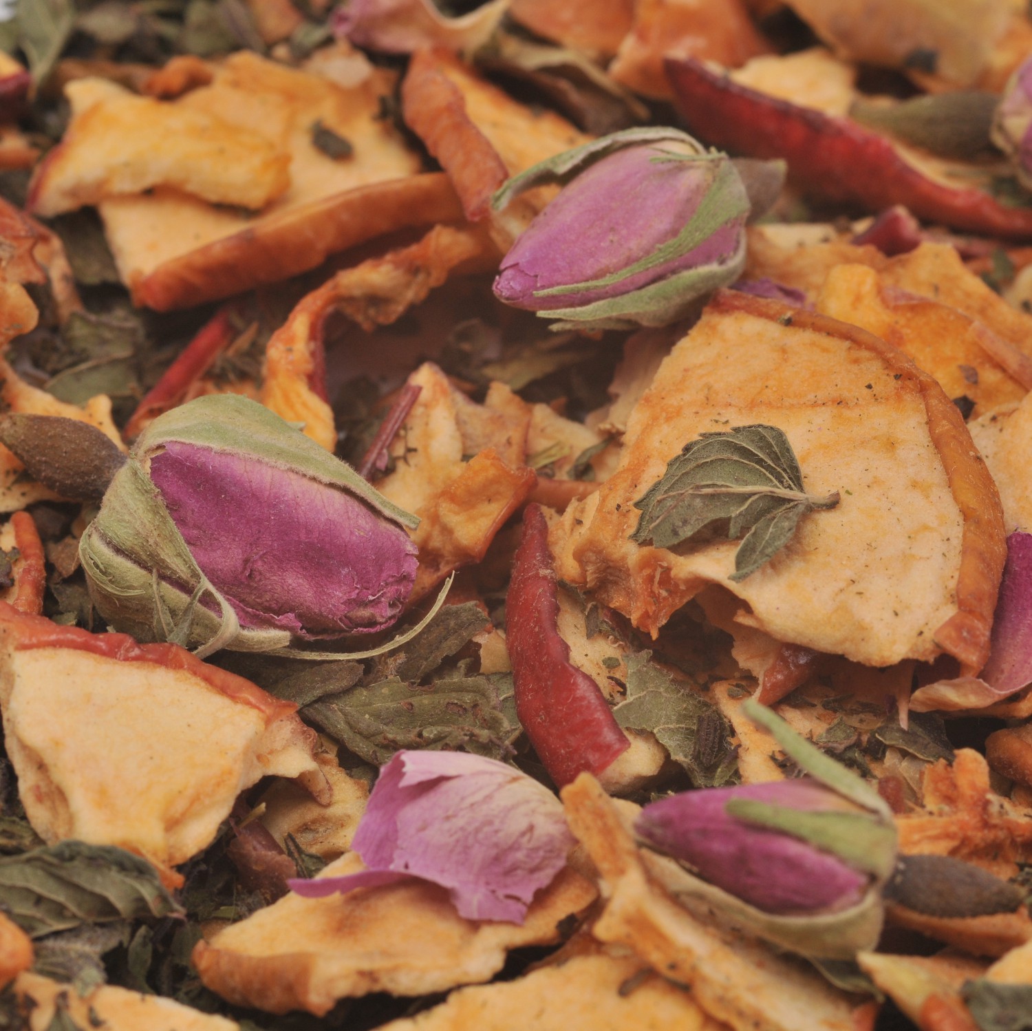 Zutaten: Apfel, Pfefferminze, Rosenblätter.