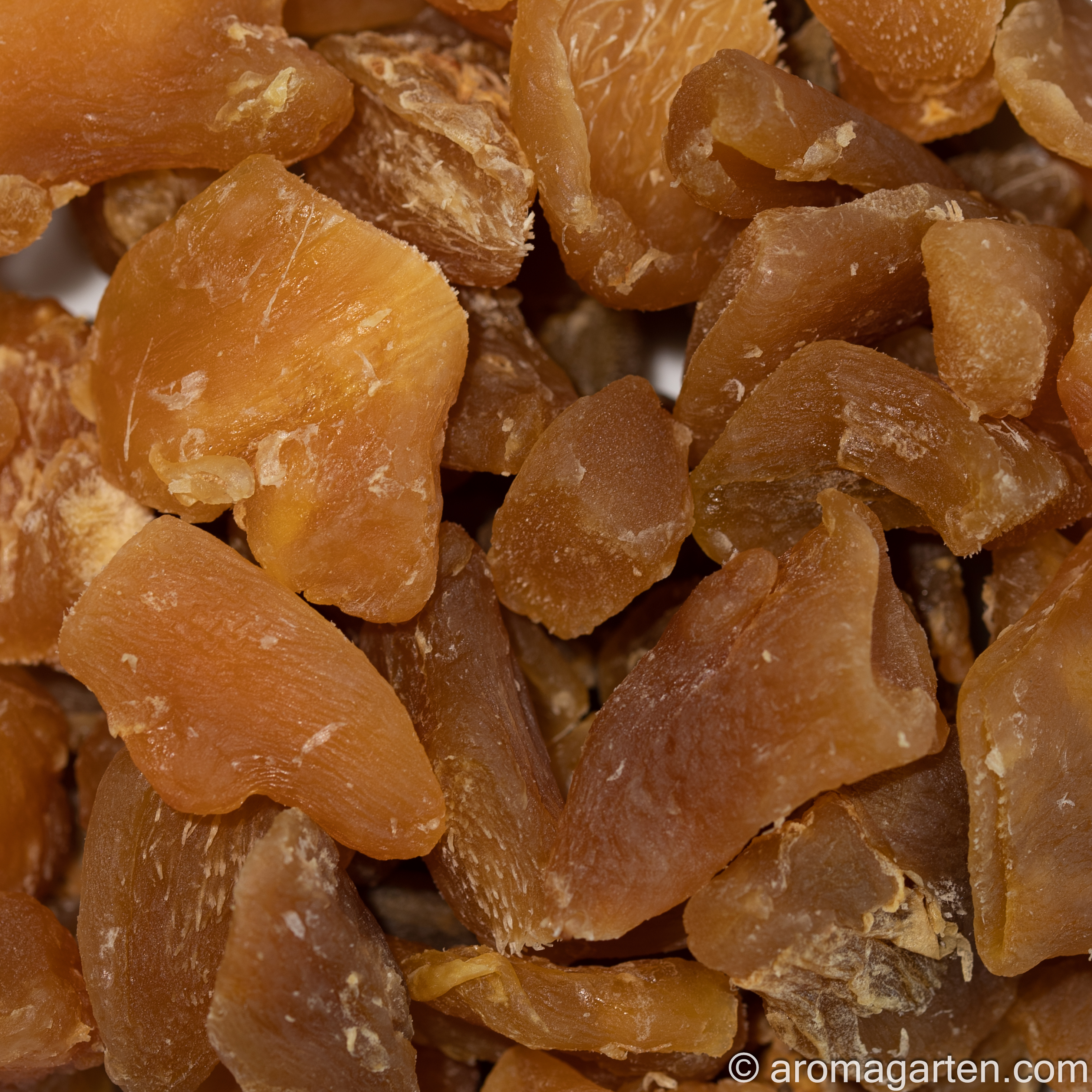 Ungeschwefelt, laut Hersteller im eigenen Saft blanchiert und daher nur mit dem Fruchtzucker aus dem Ingwersaft gesüßt, scharf, etwas fester, mit deutlicher Faserstruktur.